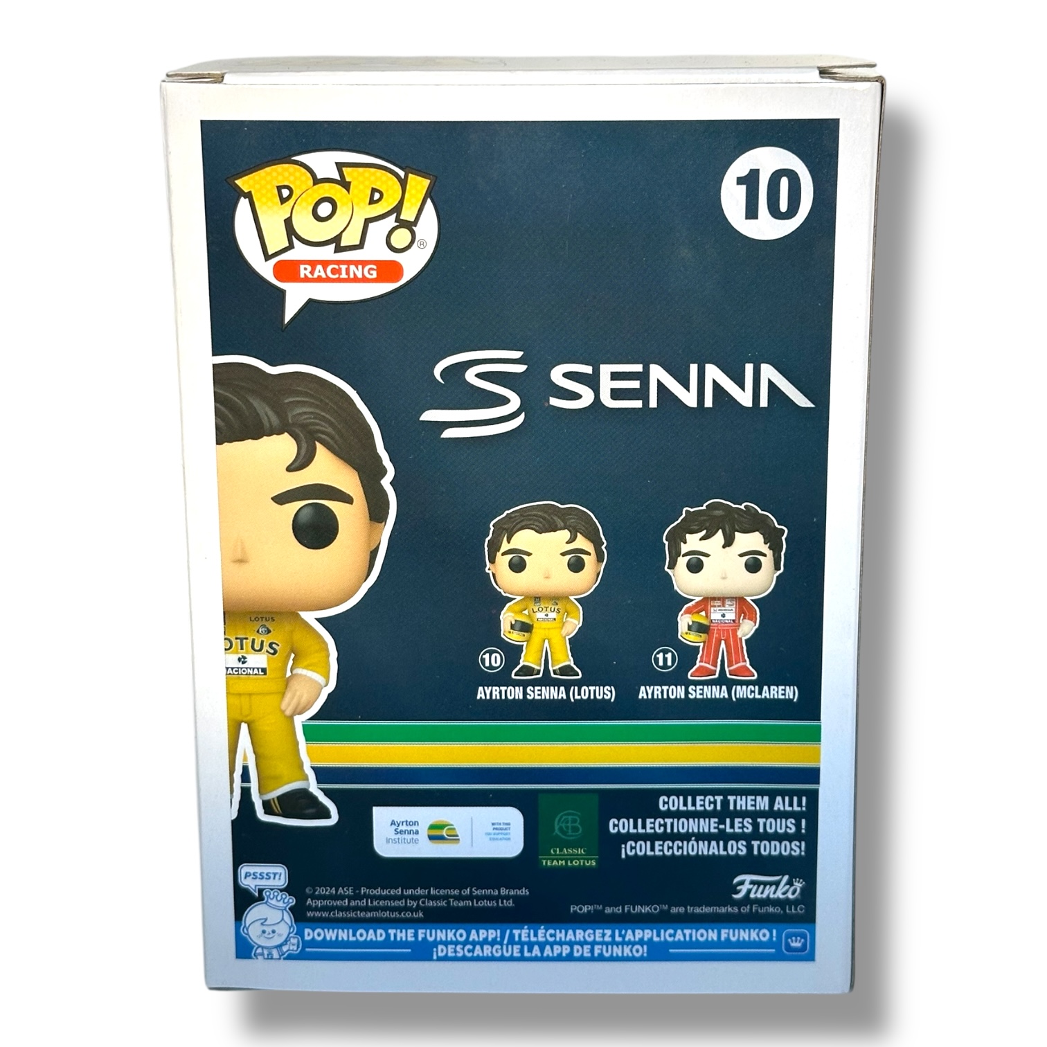 – Caja window box con branding de Funko Pop! Racing / Senna.