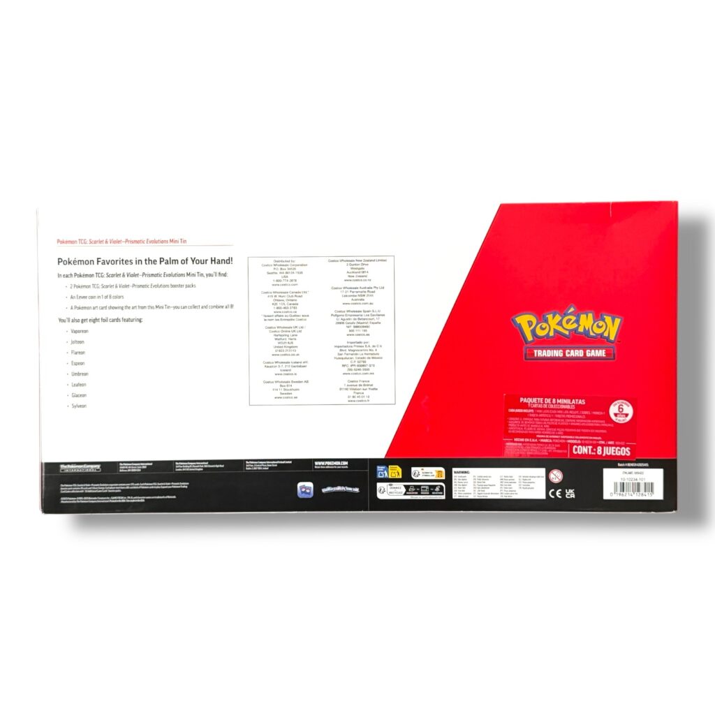 Expande tu colección con una presentación exclusiva de club con el Pokémon 8-Pack Prismatic Evolutions Mini Tins Costco Exclusive. Este bundle reúne varias mini tins de la expansión Scarlet & Violet—Prismatic Evolutions, ideal para coleccionistas que disfrutan abrir múltiples sobres en un formato práctico, llamativo y fácil de exhibir. Es una excelente opción para fans de Eevee y sus evoluciones, gracias al estilo visual característico de esta expansión y al atractivo de una edición exclusiva de Costco.
